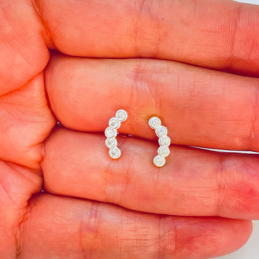 XP541 Aro Palito Semi Curvo fila de 5 mini circones Diá. 3 mm con bisel 11.5 x 3 mm Espesor 2 mm Aro Baño Plata