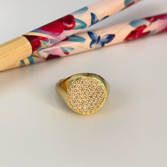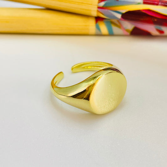 WO71 Anillo Tipo Chevalier Small San Benito Esfera diá. 13 mm Ancho argolla 2.8 mm Anillo Baño Oro
