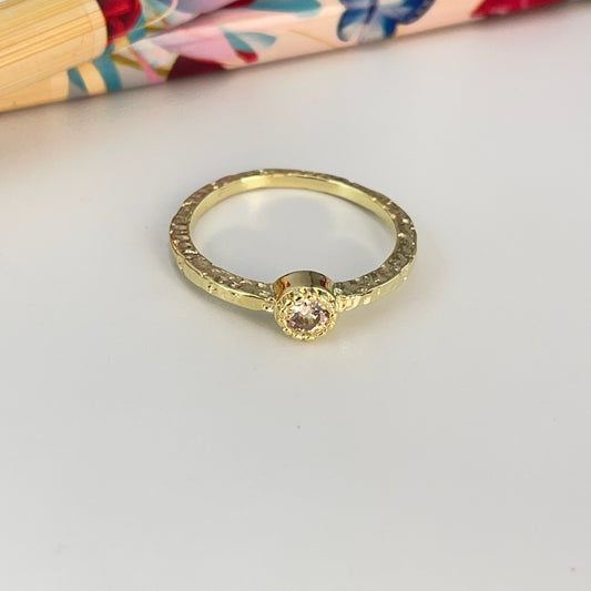 WO76-12 Anillo Martelado Circón Borde Rutilado 5 mm Ancho argolla 1.2 mm Espesor 1.2 mm Anillo Baño Oro