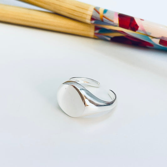 WP71 Anillo Tipo Chevalier Small San Benito Esfera diá. 13 mm Ancho argolla 2.8 mm Anillo Baño Plata
