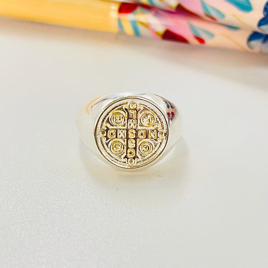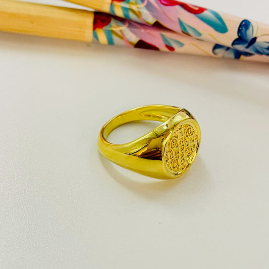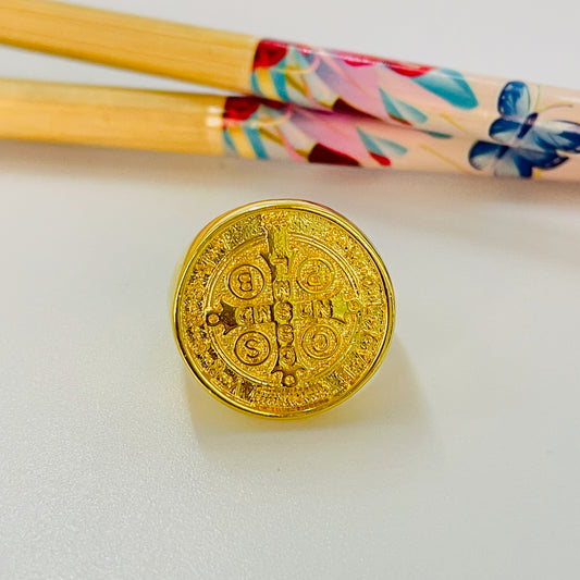 WO72 Anillo Tipo Chevalier Large San Benito Esfera diá. 19.5 mm Ancho argolla 3 mm Anillo Baño Oro