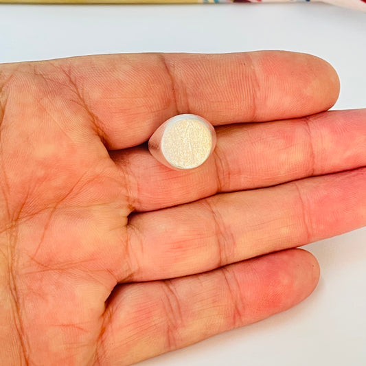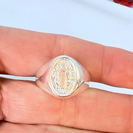 WP77 Anillo Tipo Chevalier San Benito Esfera Ovalada 15 x 11 mm Ancho argolla 3 mm Anillo Baño Plata
