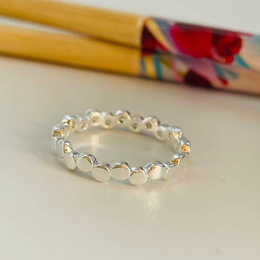 WP53 Anillo Circones de 2.5 mm en zigzag y circulos de 2 mm Anillo Baño Plata