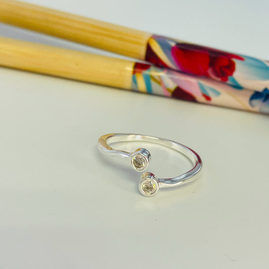 WP46 Anillo con dos estrellas de 6 mm con circones en las puntas Ancho Argolla 3 mm Anillo Baño Plata