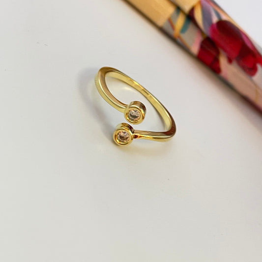 WO49 Anillo Ajustable Estrella 5 mm y Punto de Luz 3.5 mm en puntas Ancho Argolla 1.5 mm Anillo Baño Oro