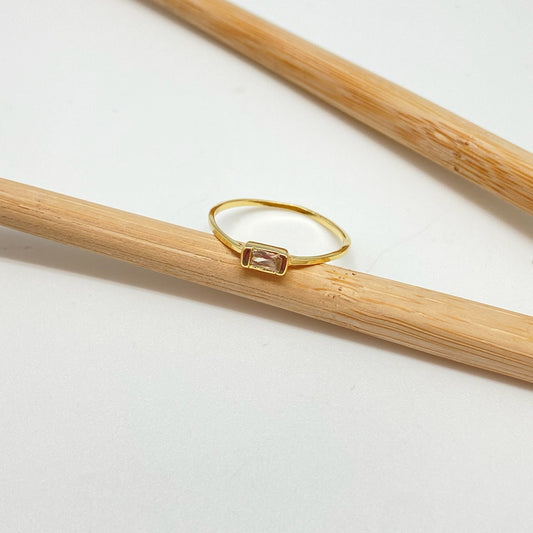 WO56 Anillo 1 circon cristal baguette 4x2 mm argolla 1 mm espesor Anillo Baño Oro