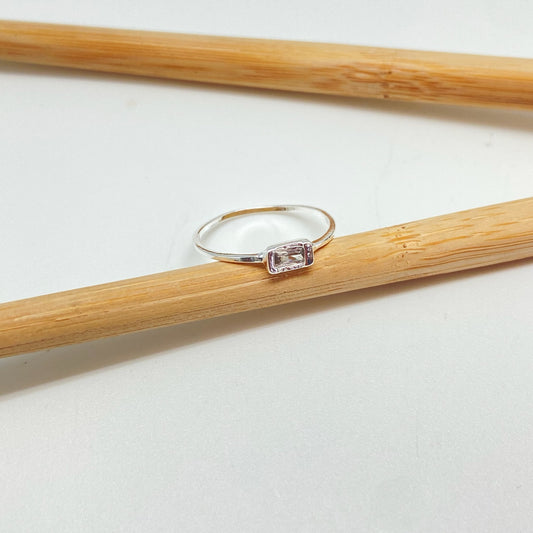 WP56 Anillo 1 circon cristal baguette 4x2 mm argolla 1 mm espesor Anillo Baño Plata