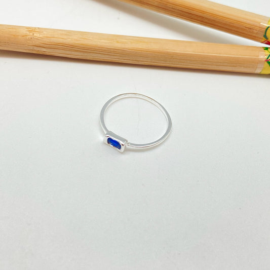 WP57 Anillo 1 circon zafiro baguette 4x2 mm argolla 1 mm espesor Anillo Baño Plata
