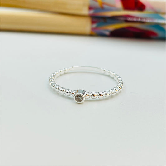 WP04 Bolita con Circón Anillo Baño Plata