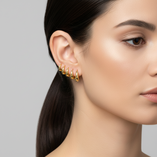 XO491 Aro Argolla Tipo Gota Presión Ancho de 2.5 a 5 mm Espesor 1 mm Aro Baño Oro