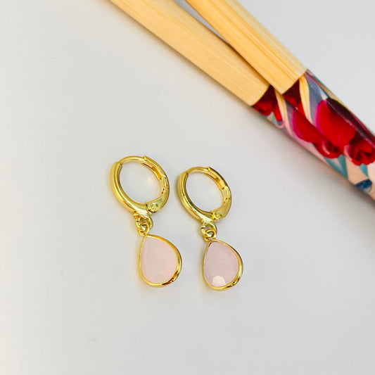 XO102 Argolla Gota Cuarzo Rosa Aro Baño Oro