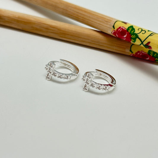 XP322 Aro Argolla Circones Cruz 12 x 7 mm Espesor 2 mm Aro Baño Plata
