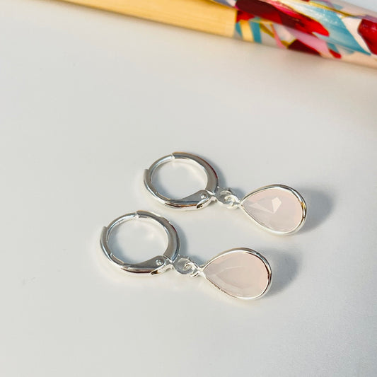 XP102 Argolla Gota Cuarzo Rosa Aro Baño Plata