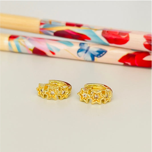 XO122 Aro Argolla Presión 3 Estrellas Circón 10mm Aro Baño Oro