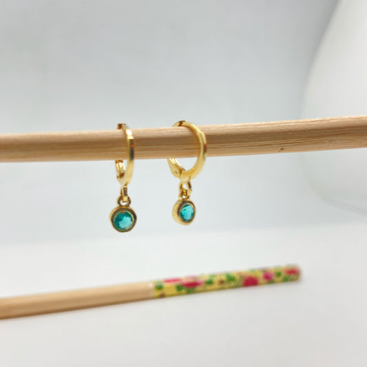 XO236 Aro Argollita con Punto de Luz Color Verde Turmalina Argolla 12 mm Colgante 4 mm Aro Baño Oro
