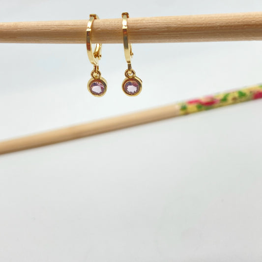 XO238 Aro Argollita con Punto de Luz Color Cuarzo Rosa Argolla 12 mm Colgante 4 mm Aro Baño Oro