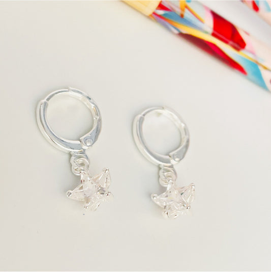 XP207 Aro Argolla con Estrella de Cristal Largo Total 22 mm Estrella 8 mm Aro Baño Plata