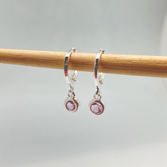 XP238 Aro Argollita con Punto de Luz Color Cuarzo Rosa Argolla 12 mm Colgante 4 mm Aro Baño Plata