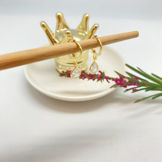 XO415 Aro Gota Cristal 10x6 mm Largo total 25 mm Diá argolla 12 mm Aro Baño Oro