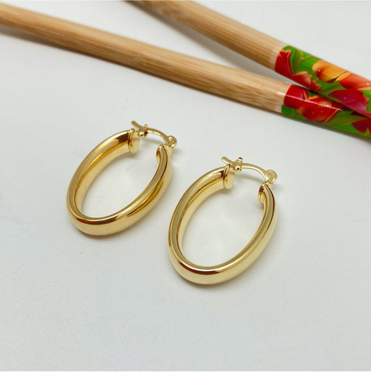 XO09 Aro Argolla Ovalada 25x18 mm ancho 6 mm Aro Baño Oro