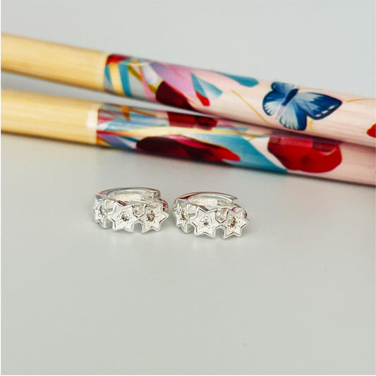 XP122 Aro Argolla Presión 3 Estrellas Circón 10mm Aro Baño Plata