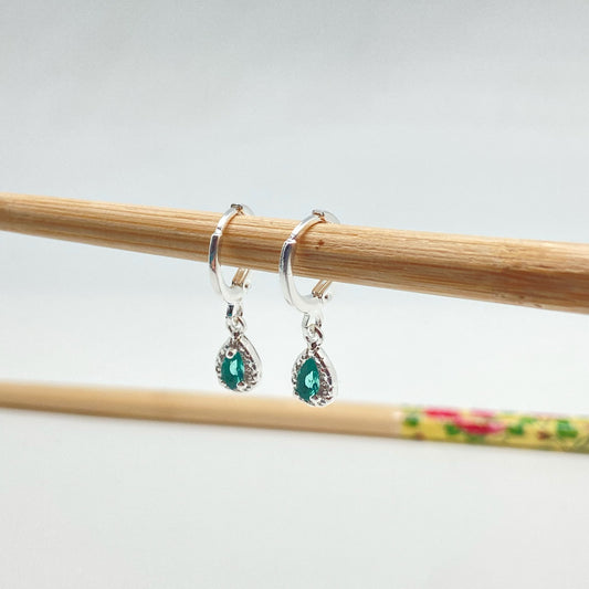 XP235 Aro Argollita con Gota Circón Verde Turmalina Borde craquelado Argolla 12 mm Gota 8x6 mm Aro Baño Plata