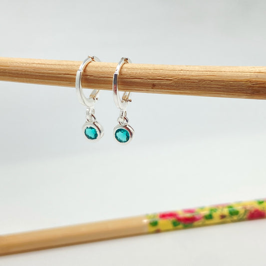 XP236 Aro Argollita con Punto de Luz Color Verde Turmalina Argolla 12 mm Colgante 4 mm Aro Baño Plata