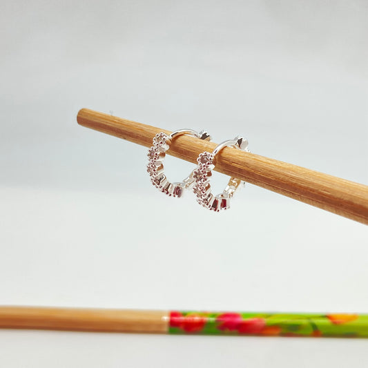 XP249 Aro Argolla de Presión 6 Circones Circón Cristal y 4 Mini Flores posteriores Bordes Rutilados diá. 15 mm Ancho 3 mm Aro Baño Plata
