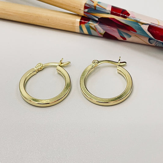 XO374 Argolla Tubo Cuadrado 15 x 2 mm Broche Italiano Aro Baño Oro