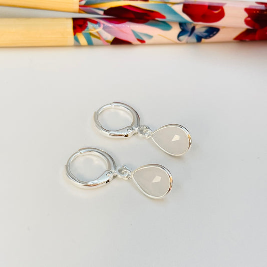 XP217 Aro Argolla Gota Opalita Facetada Aro Baño Plata