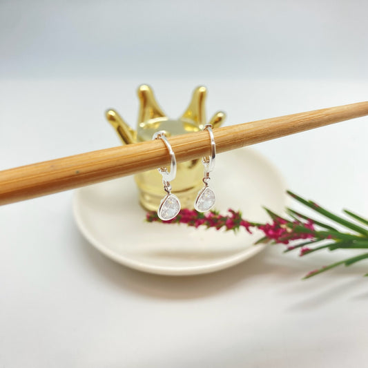 XP415 Aro Gota Cristal 10x6 mm Largo total 25 mm Diá argolla 12 mm Aro Baño Plata