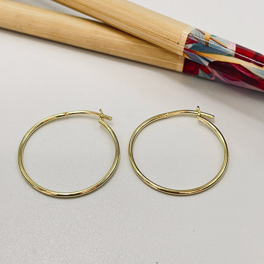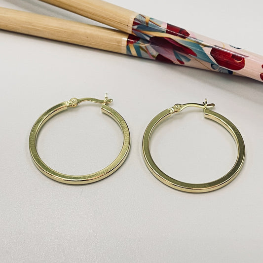 XO376 Argolla Tubo Cuadrado 25 x 2 mm Broche Italiano Aro Baño Oro