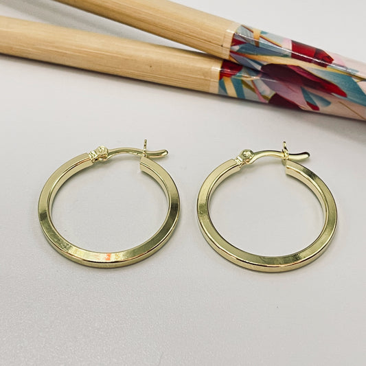 XO375 Argolla Tubo Cuadrado 20 x 2 mm Broche Italiano Aro Baño Oro