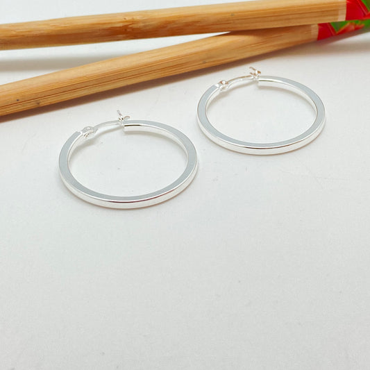 XP376 Argolla Tubo Cuadrado 25 x 2 mm Broche Italiano Aro Baño Plata