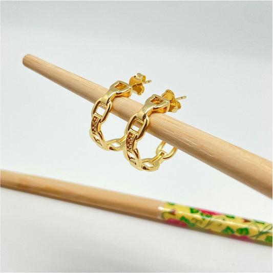 XO250 Aro Argolla Eslabones y 1 eslabón con 3 micro circones Diá. 20 mm Ancho 5 mm Aro Baño Oro