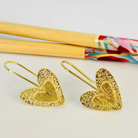 XO385 Aro Colgante con gancho Corazón borde martelado y corazón en relieve 22 x 20 mm Largo Total 32 mm Aro Baño Oro