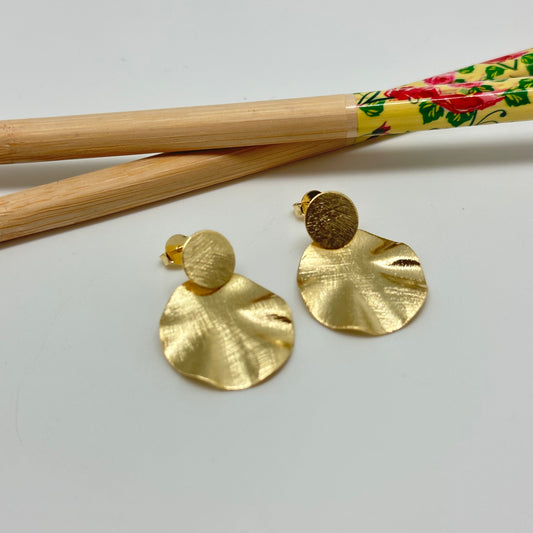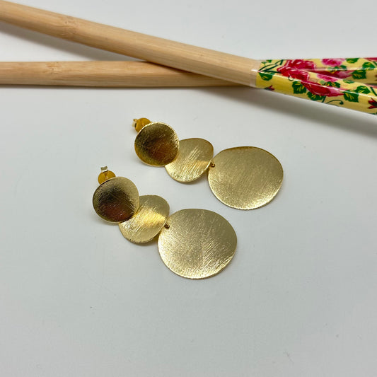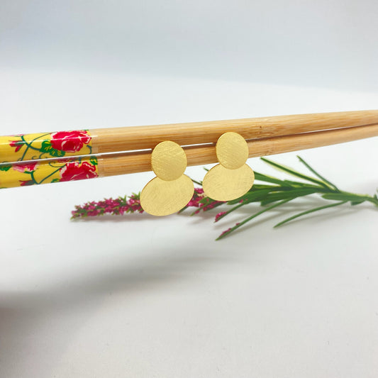 XO408 Aro 2 Argollas Lijadas Entrelazadas 1 diá. 20 mm otra diá. 35 mm Largo Total 38 mm Espesor 0.6 mm Aro Baño Oro