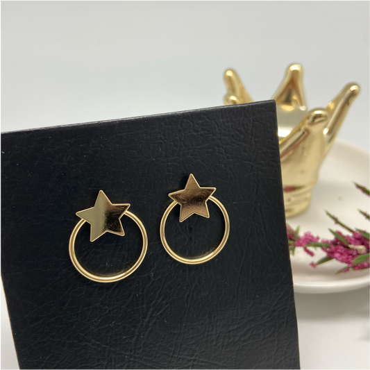 XO134 Aro Argolla Base Estrella de 12 mm y 25x19 mm Aro Baño Oro