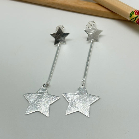 XP312 Aro base estrella y palito con colgante estrella base 12 mm palito 35 mm estrella colgante 22 mm Largo total 65 mm Aro Baño Plata