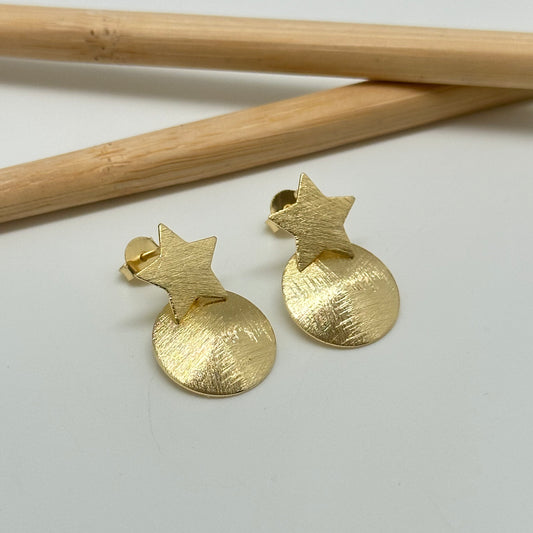 XO316 Aro Base estrella y colgante redondo base estrella 12 mm Figura 15 mm todo lijado largo total 23 mm Aro Baño Oro