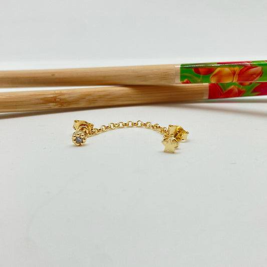 XO261 Aro Doble Mini Rayo 9x3 mm y Mini Estrella 6 mm unidos por cadena de 7 cm largo Aro Baño Oro