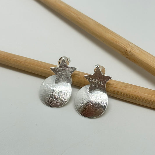 XP316 Aro Base estrella y colgante redondo base estrella 12 mm Figura 15 mm todo lijado largo total 23 mm Aro Baño Plata