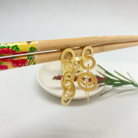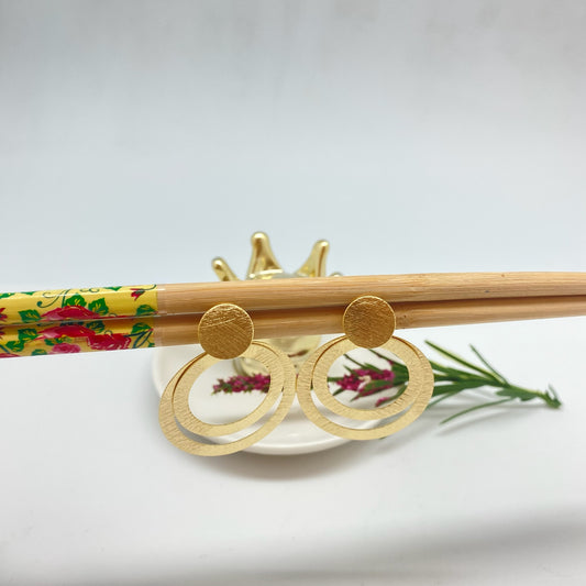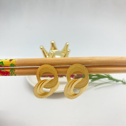 XO440 Aro tres Círculos Irregulares Calados Base 14x22 mm Ancho Mayo 33 mm Largo Total 60 mm Espesor 0.8 mm sin Aro Baño Oro Aro Baño Oro