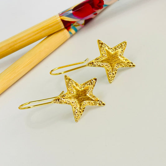 XO387 Aro Colgante con gancho Estrella borde martelado y estrella en relieve 22 x 20 mm Largo Total 35 mm Aro Baño Oro