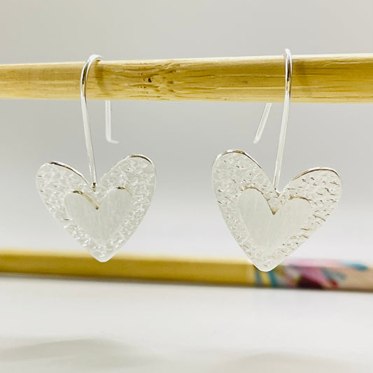 XP385 Aro Colgante con gancho Corazón borde martelado y corazón en relieve 22 x 20 mm Largo Total 32 mm Aro Baño Plata