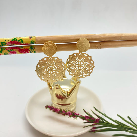 XO418 Aro Mandala Calada Lijado Figura 30 mm Base 13 mm Largo total 42 mm Aro Baño Oro