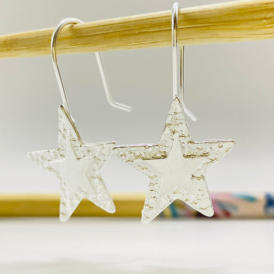 XP387 Aro Colgante con gancho Estrella borde martelado y estrella en relieve 22 x 20 mm Largo Total 32 mm Aro Baño Plata
