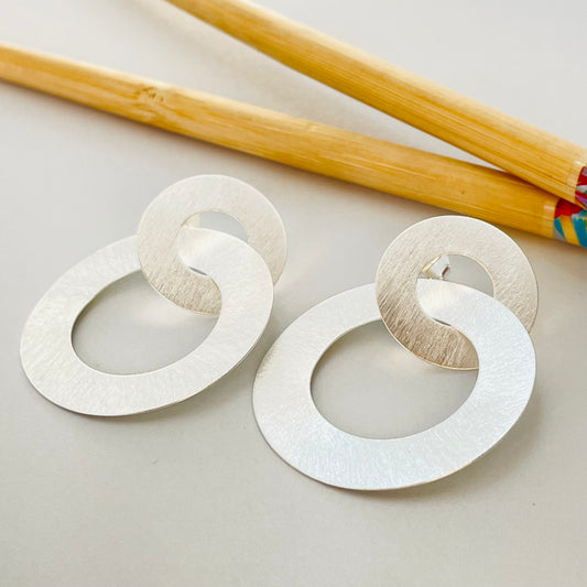 XP408 Aro 2 Argollas Lijadas Entrelazadas 1 diá. 20 mm otra diá. 35 mm Largo Total 38 mm Espesor 0.6 mm Aro Baño Plata