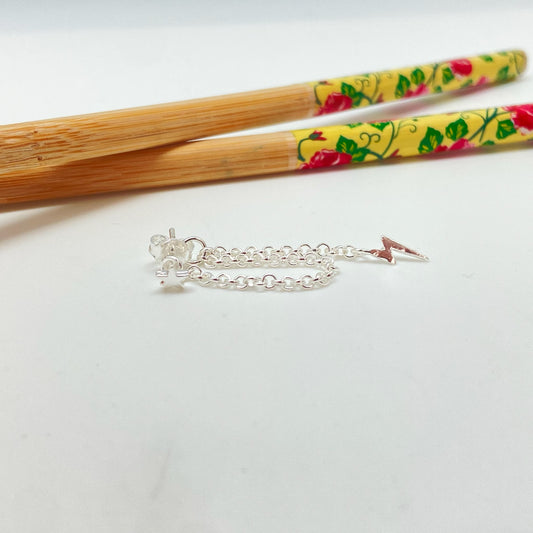 XP306 Aro base mini estrella 4 mm y mini rayo 10x4 mm colgado en cadena de 2.5 cm largo Aro Baño Plata