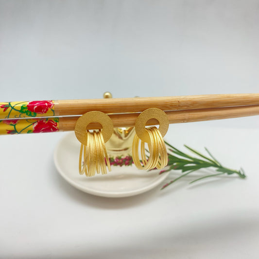 XO422 Aro Argollas Corto Lijado Base Argollas pegadas 18 mm y 3 argollas entrelazadas Largo total 30 mm Aro Baño Oro
